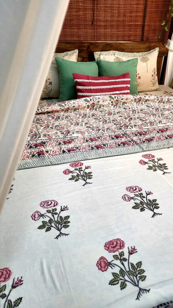 Hand-Block printed Pure Mulmul Cotton Dohars, in intricate block prints and patterns. True to their quality, the additional cotton layer in the middle provides the necessary warmth and the mild thickness, keeping cold winds out.